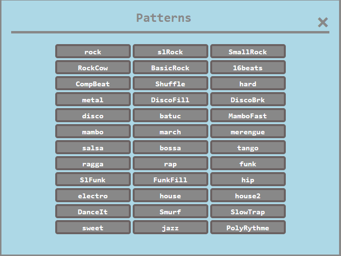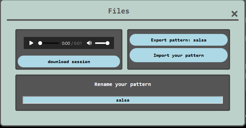 Export Pattern Button : Export the current pattern to your local computer as a small text (json) file