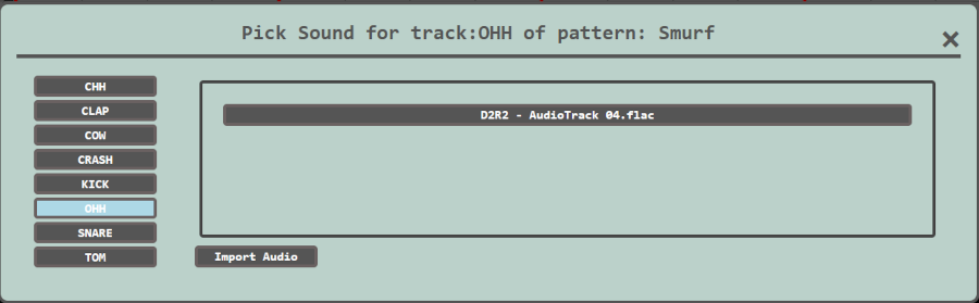 You can also choose any sound file in your local disk by using the button "Import Audio". So you can add your own samples into the drumkit